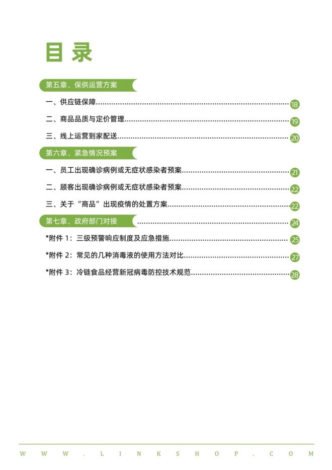 本手冊從防疫工作組織保障到政府部門的對接,共分為七章,總共2萬余字,是便利店行業(yè)首部相對完善的防疫指南與應(yīng)對手冊。