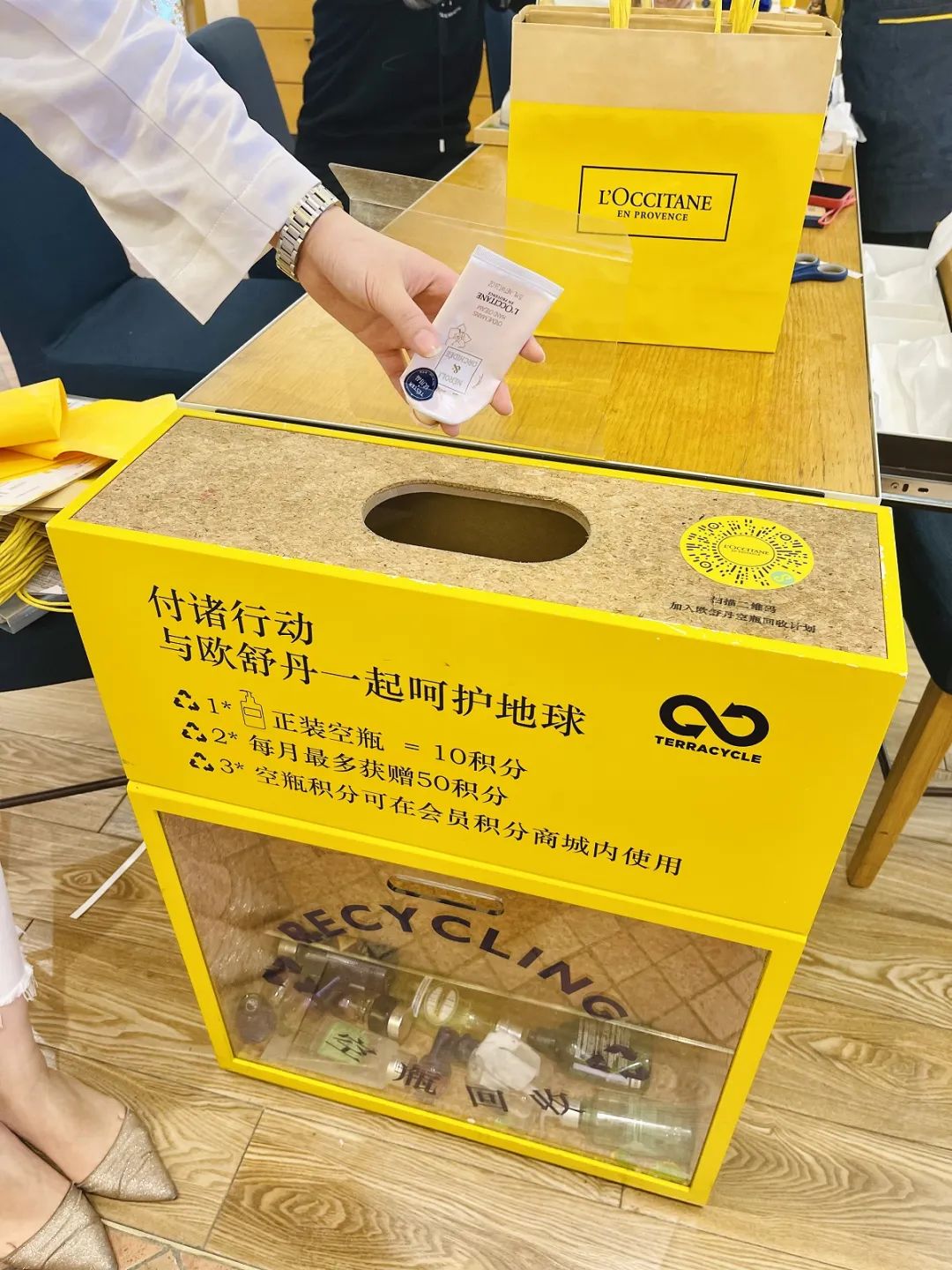 為更好踐行“減少資源浪費”的品牌承諾,歐舒丹開啟【空瓶回收計劃】,將在全國所有專柜設(shè)立空瓶回收桶,旨在將產(chǎn)品空瓶回收后加工處理成再生原材料,用于制作各類再生制品,盡可能減少資源的消耗與對環(huán)境的破壞。歐舒丹計劃在2025年,在全球100%的自營門店提供店內(nèi)回收服務(wù)。