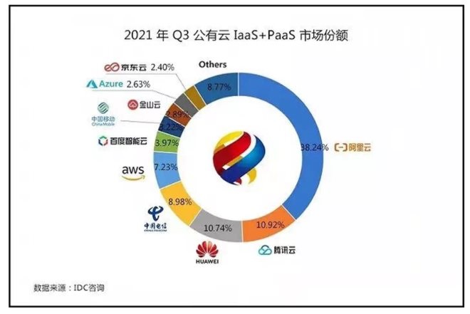 而根據(jù)IDC發(fā)布的《中國公有云服務(wù)市場(2021第三季度)跟蹤報(bào)告》中,阿里云市場份額為38.24%,位列第一;騰訊云市場份額為10.92%,位列第二;華為云市場份額為10.74%,位列第三;百度智能云則以3.97%的占有率較大差距的落后在電信云和亞馬遜云之后。