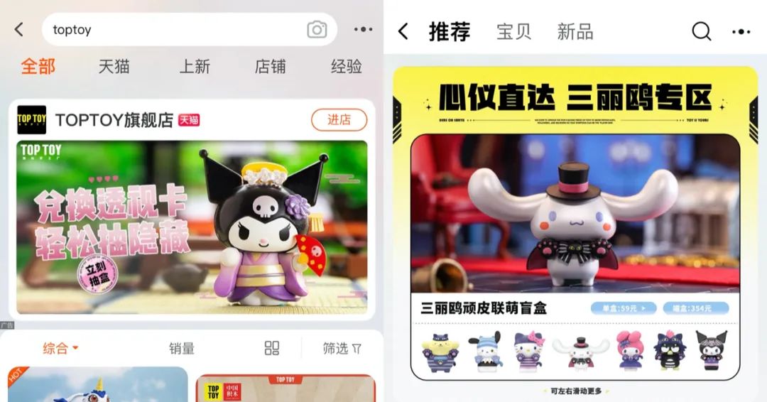 TOP TOY旗艦店banner和店內(nèi)專區(qū)均重點(diǎn)營銷三麗鷗系列產(chǎn)品