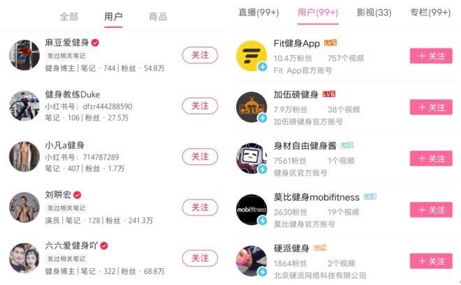 小紅書和B站上的健身博主