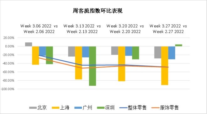一線(xiàn)城市周客流環(huán)比趨勢(shì)