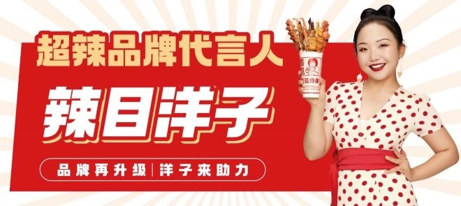 “網(wǎng)紅”也是喜姐炸串的標(biāo)簽之一,醒目的國(guó)潮剪紙風(fēng)門(mén)店形象和包裝設(shè)計(jì),直接帶來(lái)品牌傳播和記憶。包裝走港式風(fēng)格,采用百元人民幣的色號(hào),引來(lái)網(wǎng)紅合拍帶來(lái)口碑傳播。品牌還邀請(qǐng)辣目洋子做代言人,作為觸達(dá)目標(biāo)消費(fèi)人群的重要方式,其名字與門(mén)店的麻辣炸串有相似性,且形象與喜姐炸串相符,都非常的“討喜”。