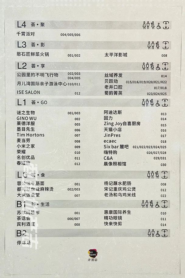 然后,附上一張我在電梯廳拍到的品牌列表,這大概率是目前所有已簽約品牌(但并非都已經(jīng)開業(yè))。