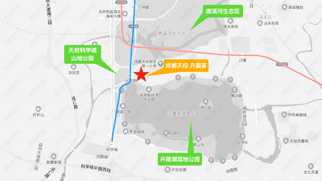 項目北面背靠鹿溪河生態(tài)區(qū),南側(cè)緊鄰興隆湖濕地公園,往西還有舉步可達的天府科學城山地公園。雖然目前看來遠離市中心,但是地鐵1號線興隆湖站可直抵項目,所以交通便捷性并不差。