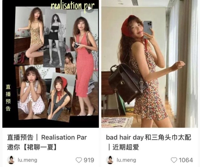 一個(gè)征兆是很多小紅書捧紅的達(dá)人,紛紛轉(zhuǎn)戰(zhàn)抖音直播帶貨。以小紅書“捧紅”的穿搭博主LUMENG為例,她在小紅書有70萬粉絲,主打法式風(fēng)情的女裝穿搭,推薦帶貨的品牌也集中在海外的小眾品牌,單價(jià)大多在千元以上。