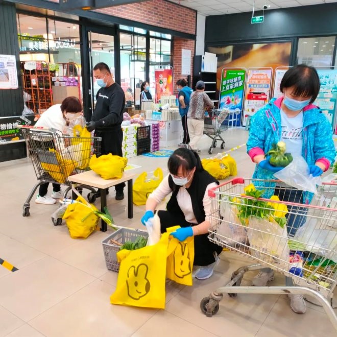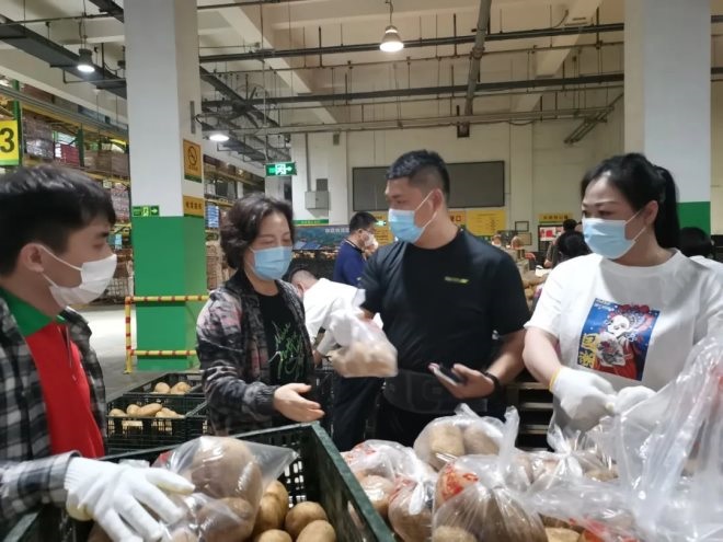 當晚,華冠物流園區(qū)燈火通明,總部及物流人員正在加班加點的把剛剛到貨的40多車蔬菜等商品卸車分裝,準備明日一早配送到華冠下屬各個門店。