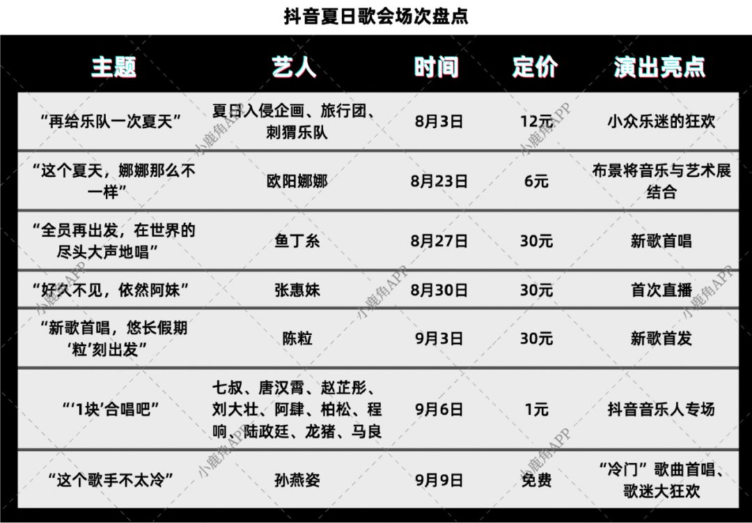 2021年8月,抖音“夏日歌會(huì)”活動(dòng)如約而至,抖音官方邀約歌手陳粒、張惠妹等多位明星舉行線上演唱會(huì)。與以往不同的是,這次歌會(huì)采用了收費(fèi)直播方式。