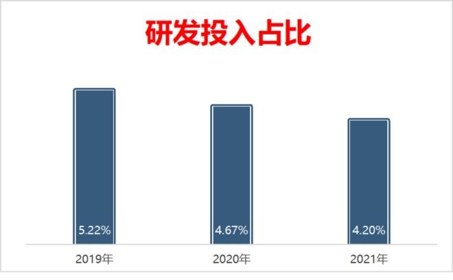 據公開資料顯示,科沃斯2021年研發(fā)費用為5.49億元,占營收的比例為4.20%,而2019~2020年的研發(fā)投入占比分別為5.22%、4.67%,呈現(xiàn)逐年下降的趨勢;銷售費用為32.37億元,同比增長107.39%,占營收的比例為24.74%,是研發(fā)投入的近6倍。