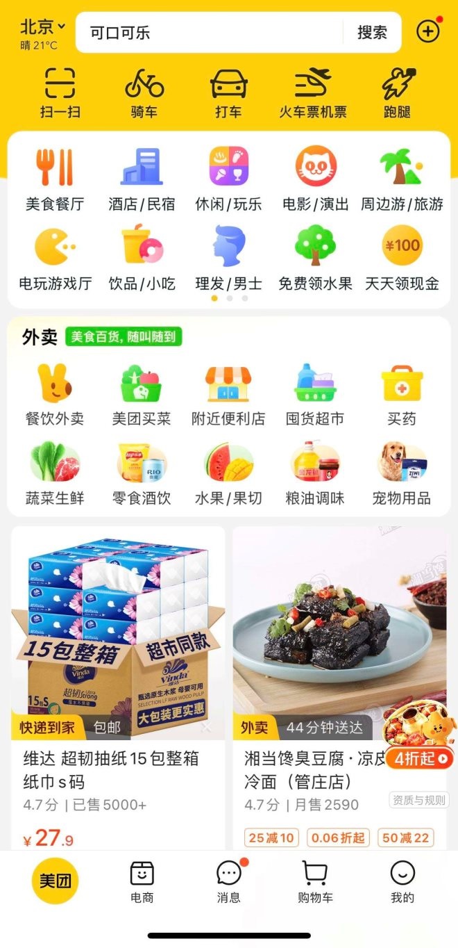 北京地區(qū)美團(tuán)APP首頁(yè),美團(tuán)優(yōu)選入口已消失