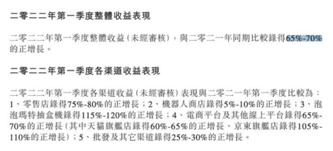 泡泡瑪特2022年一季度整體收益增長(zhǎng)65%-70%