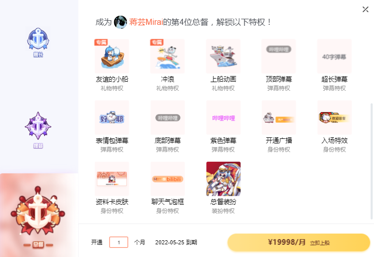 豪擲千金高價(jià)簽約知名游戲主播馮提莫,大費(fèi)周章引入外部娛樂公會,還在原有虛擬禮物的基礎(chǔ)上,增加了“大航!贝蛸p渠道,粉絲可購買“船票”,成為艦長(198元/月)、提督(1998元/月)、總督(19998元/月)。