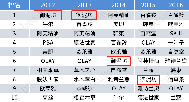 這導(dǎo)致主品牌御泥坊增速放緩,并逐漸在歷年天貓雙十一排位的爭(zhēng)奪中,淡出視野。自2016年,御泥坊品牌掉出當(dāng)年天貓雙十一化妝品前十排行榜后,就再?zèng)]能入榜。