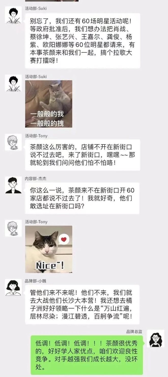 品牌部則表示茶顏悅色不來,就去長沙跟茶顏悅色打擂臺。