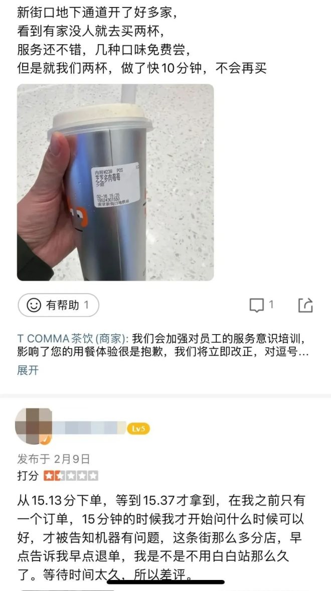以此來看,勢頭很猛的T COMMA在經(jīng)歷了開業(yè)火熱之后,人氣逐漸下滑,同時,其自身品控和服務問題也慢慢暴露出來。