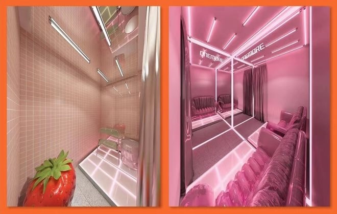 據(jù)了解,在北京首店的整體設(shè)計上,月楓堂主要運(yùn)用了紅色以及金屬色,門店看起來顯得“喜氣洋洋”,十分引人注目,能夠起到吸引顧客進(jìn)店的作用;另外店門口還設(shè)置了一個很大的代表著月楓堂的月亮形狀圖案,增強(qiáng)了品牌的辨識度。