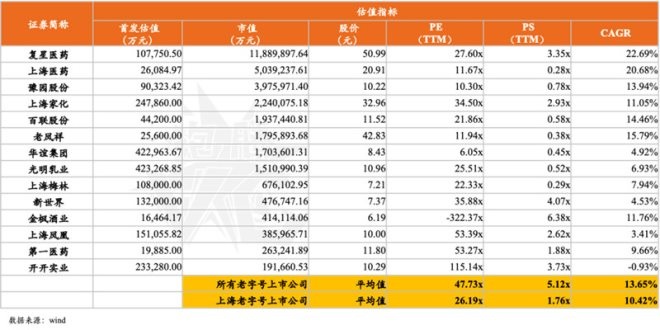 圖表10:上海部分老字號估值指標(biāo)一覽