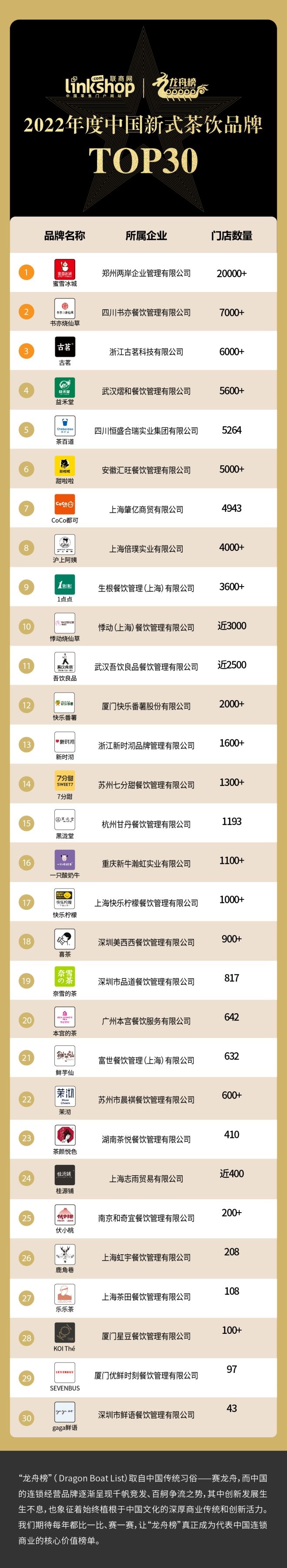 2022年度中國新式茶飲品牌TOP30