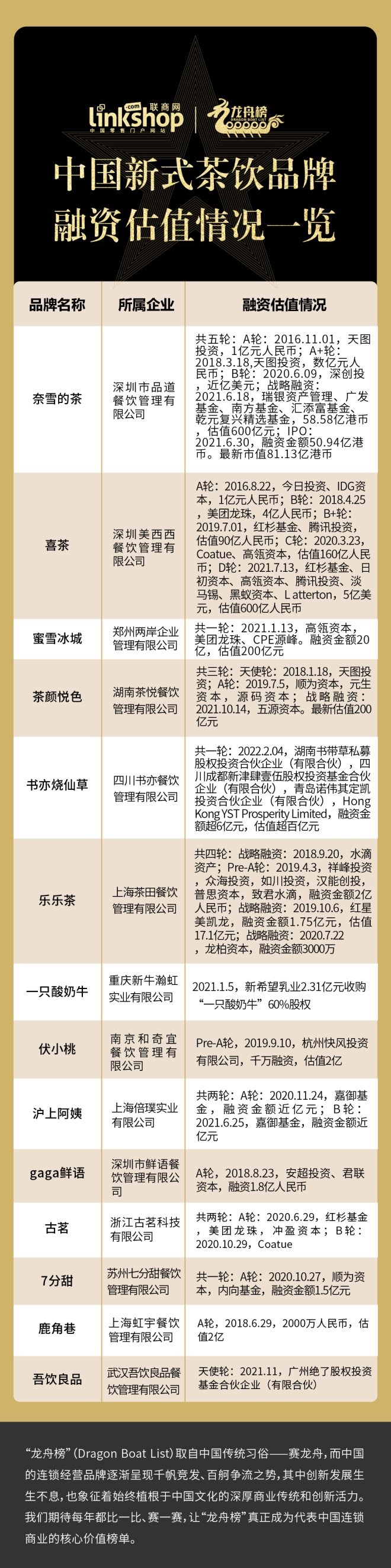 新茶飲快速“跑馬圈地”的背后,資本的力量不容忽視,《聯(lián)商網(wǎng)》同步推出“中國新式茶飲品牌融資估值情況一覽”,一窺二級市場對新茶飲賽道的反應(yīng)。