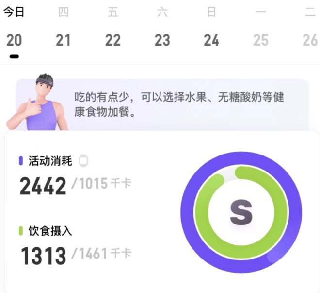 吳鶴的活動消耗和飲食攝入情況
