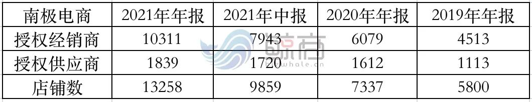 但我們也要對應(yīng)另一項數(shù)據(jù)指標(biāo):2021年,南極人授權(quán)供應(yīng)商總數(shù)為1839家,授權(quán)經(jīng)銷商總數(shù)為10311家,授權(quán)店鋪數(shù)為13258家,同比分別增長了70%、14%、81%。換而言之,南極人銷售終端的暴增與產(chǎn)品成交額GMV的增長,嚴(yán)重不成正比!