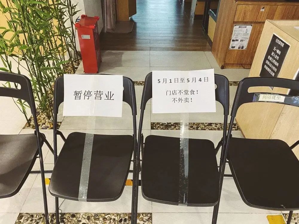 “響應(yīng)政府號召暫停堂食,5月1日至5月4日堂食暫停,門店內(nèi)支持外賣和自提”