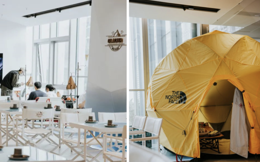 一系列休閑餐廳,也改頭換面,開出了露營(yíng)主題店,大樹直接移植到店內(nèi),仰頭可見綠葉,帳篷和木桌椅,打造出一個(gè)個(gè)休閑的露營(yíng)區(qū)。