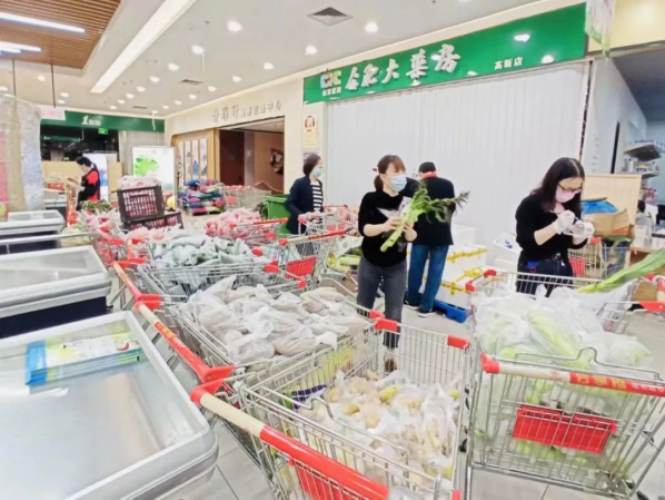 晚上11點開始,48小時內(nèi),百大合家福購物超市南崗惠園店共收到近6000份來自管控區(qū)、封控區(qū)內(nèi)住戶下的訂單。