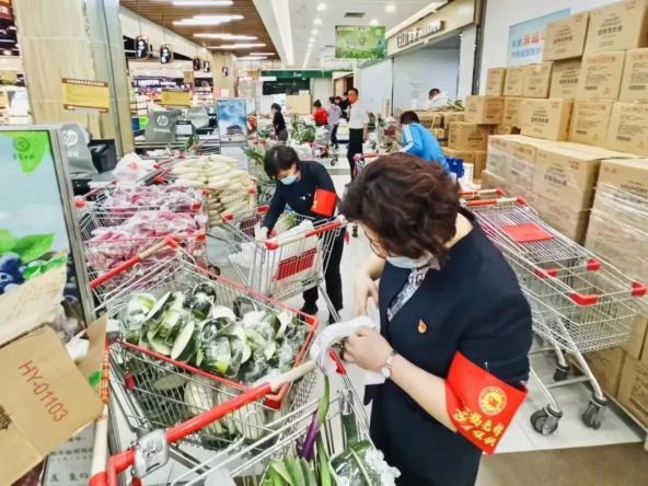 4月19日中午,從百大合家福購物超市南崗惠園店里,一批批物資被送出,一場接力賽開始了......