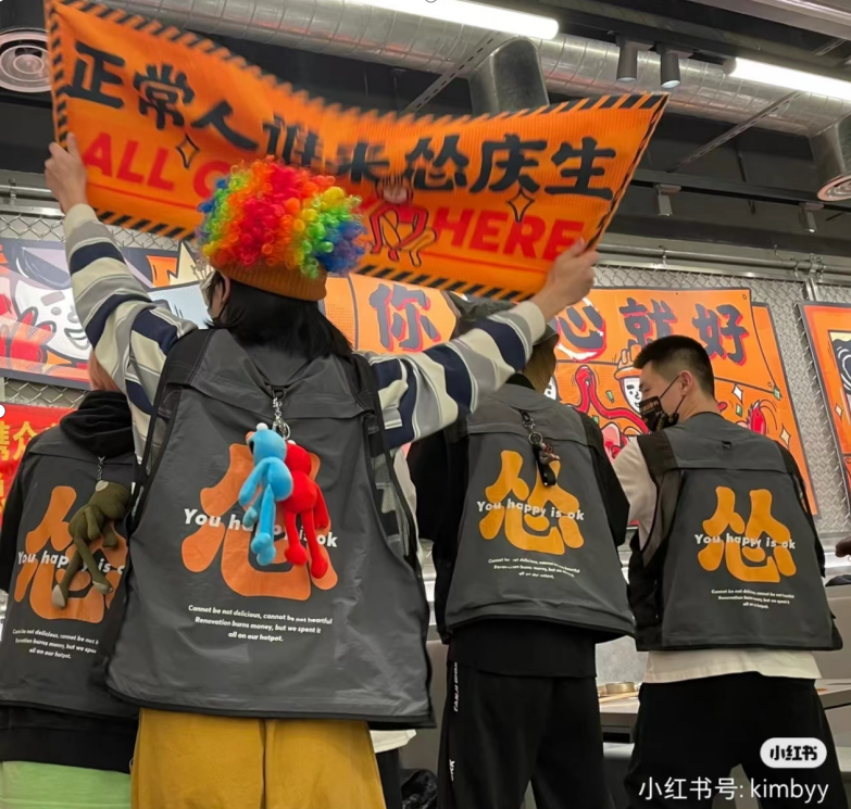 因為會玩社群,慫火鍋頗有些不夜城的意思,門外的顧客伸長了脖子等,里面的服務(wù)員們載歌載舞。