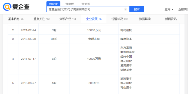 其中,鮮花電商賽道憑借著方便,性價(jià)比高的優(yōu)勢脫穎而出。表現(xiàn)在一級市場,據(jù)桔子IT數(shù)據(jù)顯示,2017年至2021年期間,鮮花電商領(lǐng)域融資事件達(dá)50筆以上。愛企查資料顯示,花點(diǎn)時(shí)間在2021年2月獲得的單筆融資金額便達(dá)到億元級別。