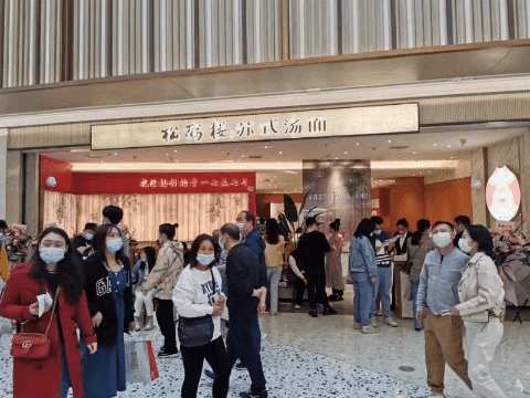 餐飲店座無虛席。易先生吐槽說:“這么說吧,上個廁所都要排半個鐘。”