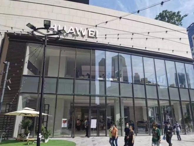 戶外街區(qū)最大的當(dāng)屬華為旗艦店,這是華中首家,整整兩層樓。蔚來旗艦店也已經(jīng)開業(yè)。