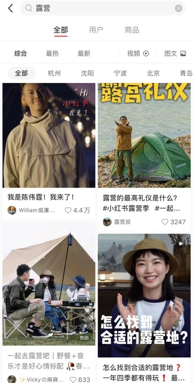 不過,消費者在露營前,往往會先在小紅書、微博等社交平臺搜索露營,查看相關推薦及攻略。