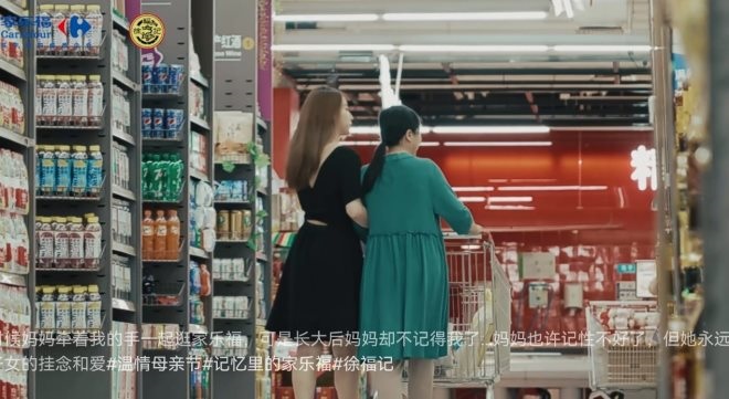 近日,一則家樂福與徐福記的母親節(jié)聯(lián)名視頻引發(fā)了不少網(wǎng)友討論,短片講述了一個(gè)母親在女兒生日來臨前為她到家樂福購買喜愛糖果的故事。視頻中,母親因?yàn)榘⑵澓DY忘記了女兒,但女兒的生日、女兒愛吃的糖果、女兒向她討要零食的樣子……所有跟女兒有關(guān)的記憶碎片卻在她記憶深處保留。