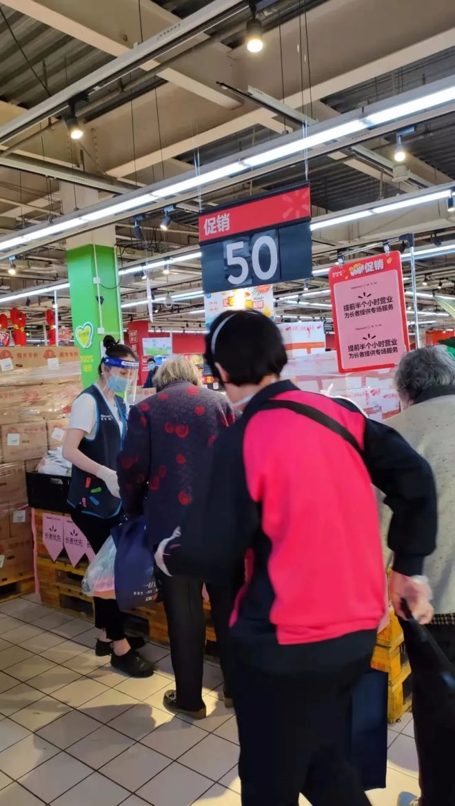 這是沃爾瑪在上海疫情當(dāng)中,看見弱勢群體的困難,開展公益行動(dòng)的一部分。疫情初期,一則老年人不會(huì)網(wǎng)上買菜崩潰大哭的視頻在網(wǎng)上引發(fā)廣泛討論,朱曉靜同樣直接推動(dòng)開展面向老年人的關(guān)愛專場。當(dāng)?shù)匚譅柆敵兴芯下營業(yè)門店提前半小時(shí)營業(yè),為老年人及行動(dòng)不便的人,提供采購便利。