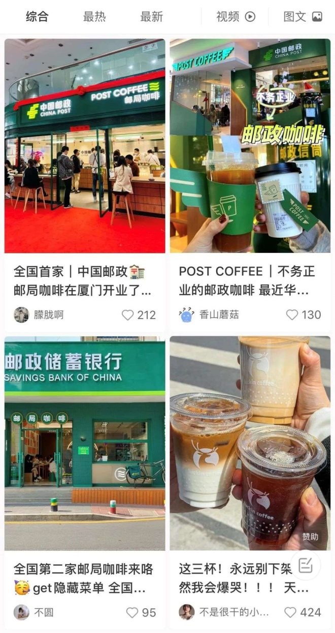 從微博到大眾點(diǎn)評(píng),再到小紅書(shū),“郵局咖啡”吸引了不少年輕人的好奇。其實(shí),在賣(mài)咖啡之前,2021年6月,中國(guó)郵政還在福州開(kāi)了“郵氧的茶”,也迎來(lái)了一撥打卡熱潮。