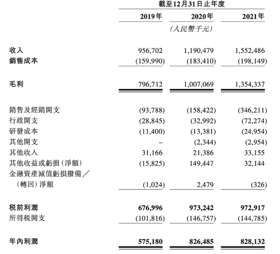 用最先進的技術武裝美麗的臉,巨子生物顯然是“造物致用”的優(yōu)等生。2021年,巨子生物收入近15.525億元,可復美、可麗金兩大網(wǎng)紅品牌,就占據(jù)超過90%的營收,毛利率進一步推高到87.2%,凈利潤8.82億元,凈利潤率更是遠超傳統(tǒng)意義的賺錢機器華熙生物和貝泰妮。
