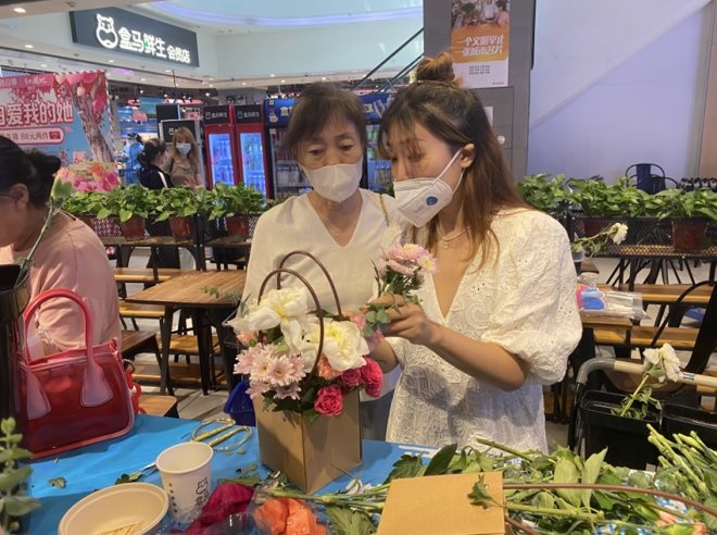 “臨時管控區(qū)的線上訂單增長明顯,顧客單次購買商品數(shù)量也是過去的好幾倍,除了菜肉蛋奶等,最近鮮花、小龍蝦銷量也有明顯的增長!焙旭R十里河店長表示。