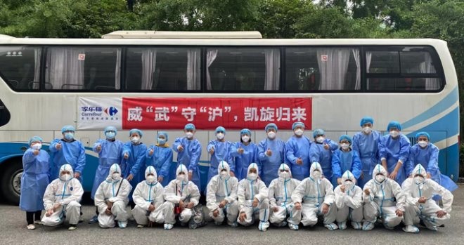 (圖:家樂福武漢援滬員工圓滿完成任務(wù) 凱旋而返)