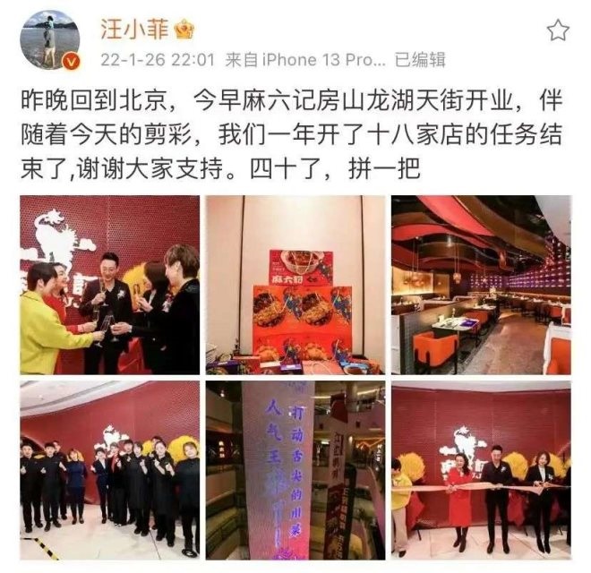 2020年創(chuàng)辦麻六記后,汪小菲一路開(kāi)店,一年連開(kāi)十八家。僅今年一月份,就在上海和北京連開(kāi)三店。