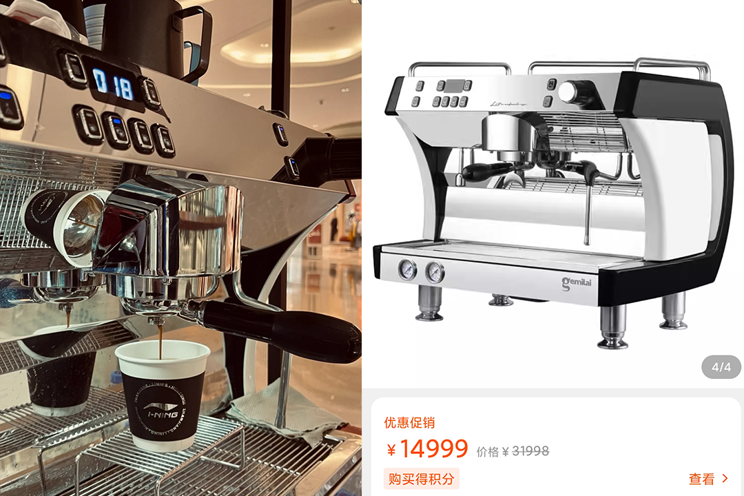 李寧咖啡配置的咖啡機之一:左圖來源于小紅書