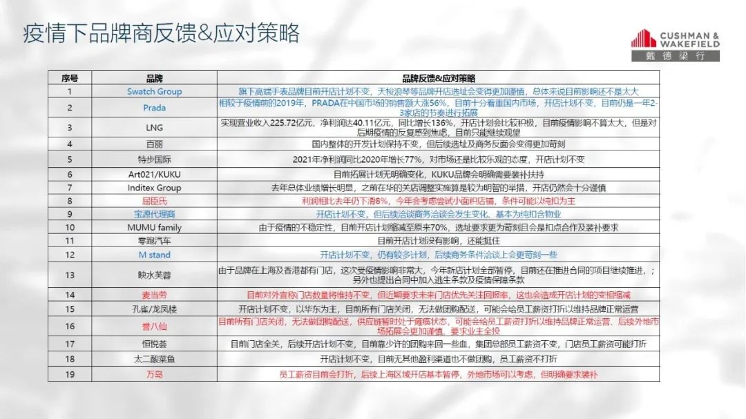 4月10日的戴德梁行《疫情下Retail分享報告》顯示,除了高端腕表和奢侈品之外,其余品牌幾乎都傾向于更謹(jǐn)慎的選址策略,商務(wù)條件上明確要求純扣甚至裝補(bǔ)。