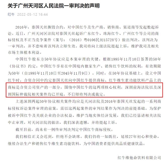 圍繞中國(guó)紅牛的這兩項(xiàng)核心權(quán)利,深圳前海法院以及深圳國(guó)際仲裁院相關(guān)案件均已開(kāi)庭,不日即將判決或裁定。