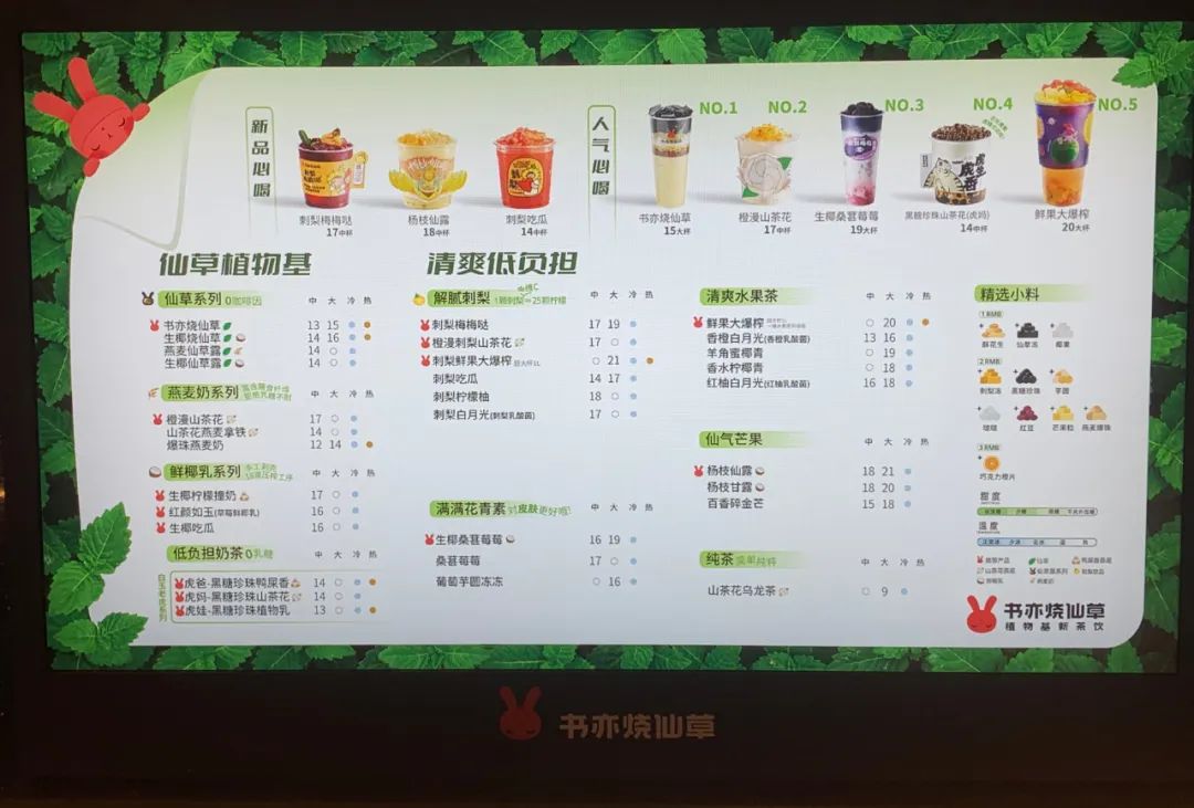 從產(chǎn)品來看,書亦燒仙草黑金店菜單上囊括了仙草植物基、水果茶、純茶為特色的奶茶,產(chǎn)品價(jià)格在12—21元之間。