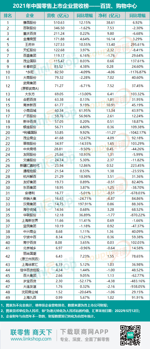 2021年中國零售上市企業(yè)營收排行榜|聯(lián)商數(shù)據(jù)