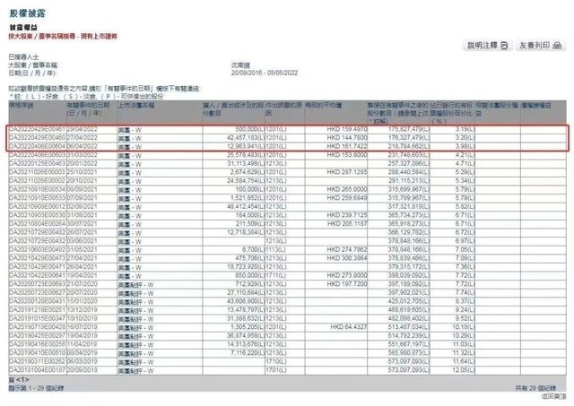 港交所股權(quán)披露的信息顯示,2022年3月以來,紅杉資本中國基金創(chuàng)始人和合伙人沈南鵬分別兩次減持美團(tuán)。其中沈南鵬分別于4月27日和29日,售出4295.72萬股美團(tuán)股票,套現(xiàn)約62.27億港元。