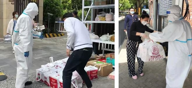 商戶們口中提到的“環(huán)球店小二”即是指環(huán)球港運(yùn)營(yíng)方月星集團(tuán)實(shí)施的“月星抗疫保供再行動(dòng)”計(jì)劃的保供團(tuán)隊(duì)。4月中旬起,標(biāo)有“環(huán)球店小二”“月星店小三”的運(yùn)送車輛頻繁出現(xiàn)在上海的大街小巷。這支由環(huán)球港和月星家居工作人員組成的保供行動(dòng)隊(duì),被稱為“環(huán)球店小二”與“月星店小三”。前者旨在解決打通“商戶-物流-市民”的最后一公里物流堵點(diǎn);后者則依托月星家居的專業(yè)力量,提供人們封控期間及封控解除后的救急家政服務(wù)需求。這些商品和服務(wù)通過(guò)微信小程序就能方便獲取。