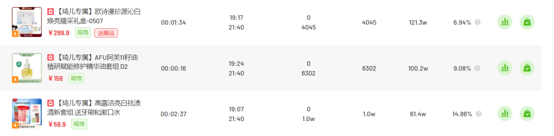 截至目前,琦兒的3場直播帶貨GMV已超4000萬。其中,5月7日“琦兒leo”直播間售賣的美妝品類里,銷售TOP1的“歐詩漫珍源沁白煥亮耀采禮盒”銷售額達121.3萬。