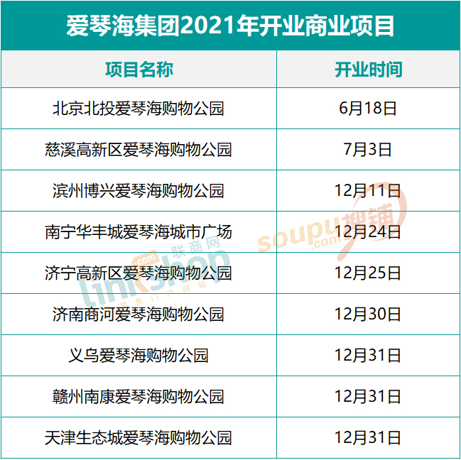 2021年愛琴海集團共新開9個商業(yè)項目,其中8座愛琴海購物公園、1座愛琴海城市廣場,大連福佳愛琴海購物公園也在2021年7月煥新升級后重新開業(yè)。除了北京北投和慈溪高新區(qū)兩座愛琴海購物公園外,其他項目均集中在12月開業(yè)。且諸如贛州愛琴海購物公園等項目為城市首進。